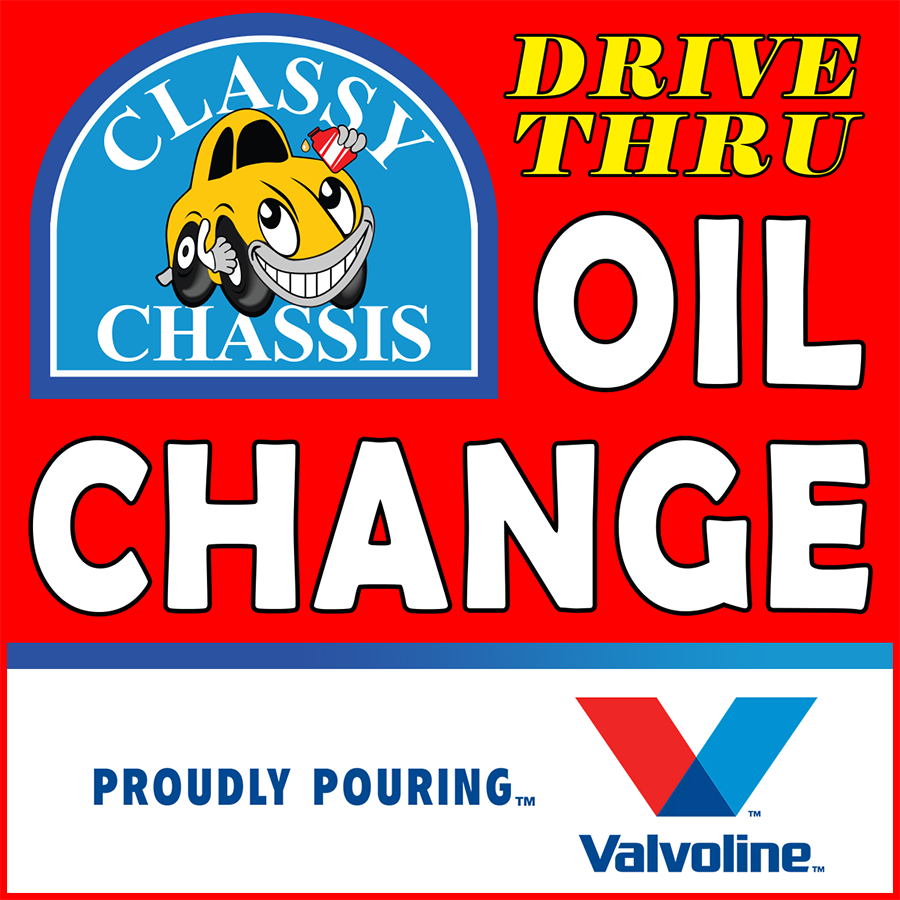 - Classy Chassis Drive-Thru Oil Change offers express Valvoline oil change, as well as belt, transmission fluid, differential