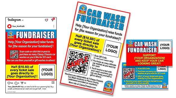 The Western Car Wash Association sells physical wash tickets that can be used at Classy Chassis (plus at any car wash that is a PSCWA member). For more information go to their website wcwa.org/mpage/CharityCarwashHome.